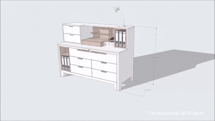 In Zeiten von Corona arbeiten immer mehr Menschen in Homeoffice, aber nicht überall ist Platz genug für einen Schreibtisch. Für eine Kommode mit ausziehbarem Tisch ist aber immer Platz. Durch die festen Tischbeine ist der Tisch stabil und ist selbst für eine schwere Nähmaschine geeignet. Der Tisch ist auf Rollen gelagert und lässt sich spielend leicht ausfahren. Das Laptop hat seinen festen Platz unter dem aufklappbaren Deckel. Strom- und Netzwerkkabel sind gleich mit in den Tisch integriert. Noch ist die Tischkommode aber nicht realisiert. Die nächste Welle kann kommen :-(